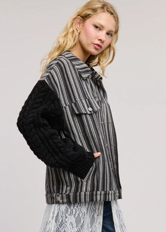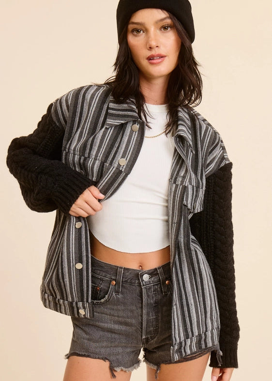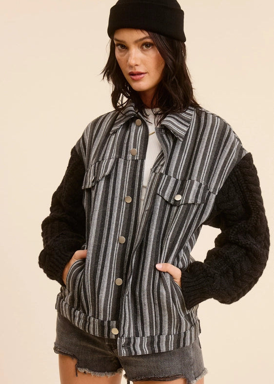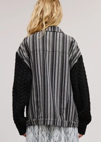 Mimosa Striped Jacket with Contrast Cable-Knit Sleeves