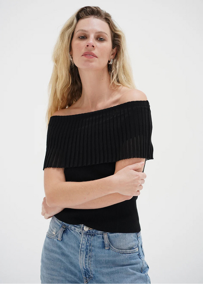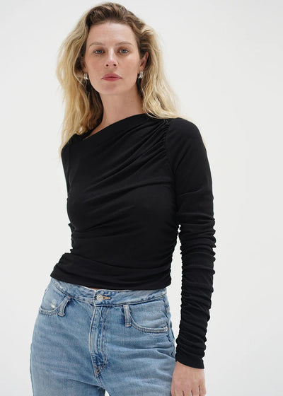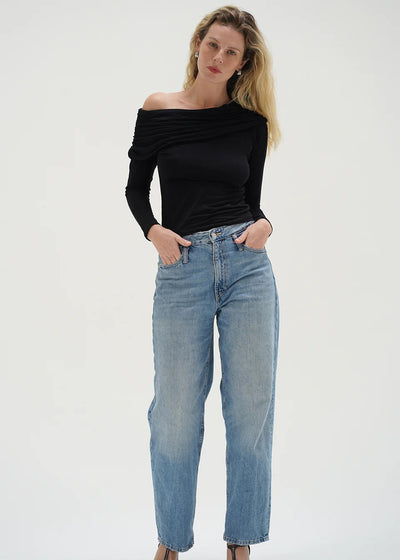 LNA Hallie Snap Collar Pullover - Stone Wash Navy