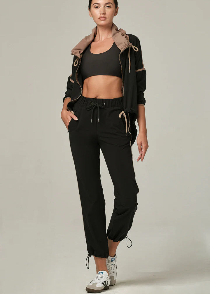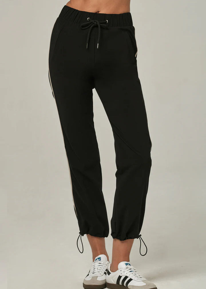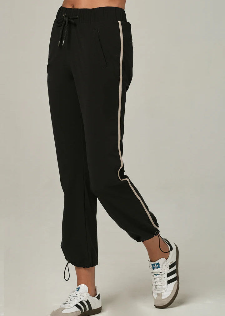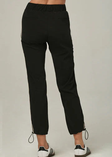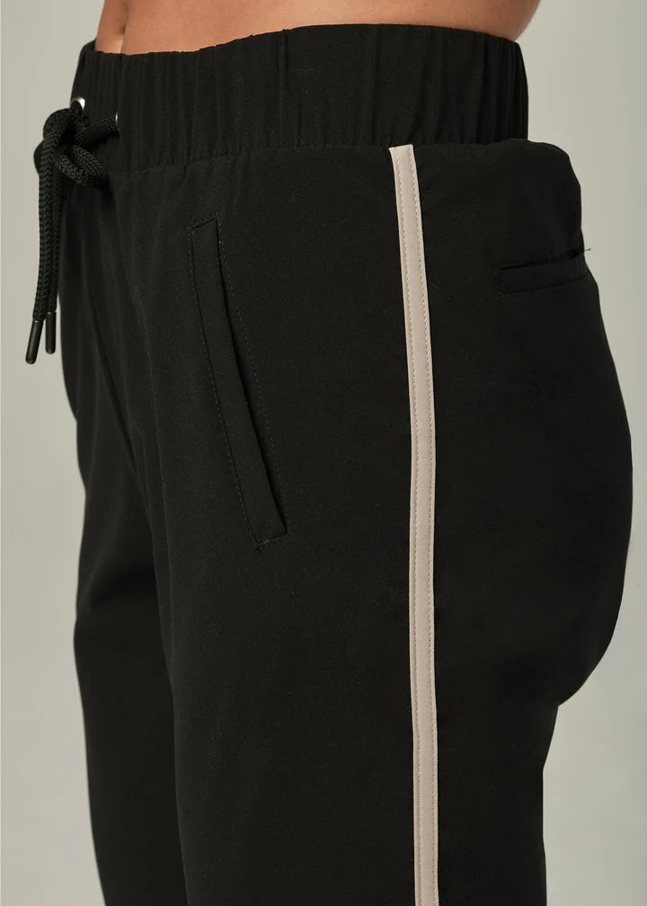 Experience effortless sophistication with the 925 Stripe a Pose Black Jogger. Designed for those seeking refined casual wear, these joggers feature a striking side stripe that flatters your frame while maintaining an athletic aesthetic. The elastic waistband paired with an adjustable drawstring provides customizable comfort, while cuffed hems deliver a contemporary finish. Built from lightweight fabric, they excel across multiple occasionsโwhether you're unwinding at home or navigating your day with polished ease.