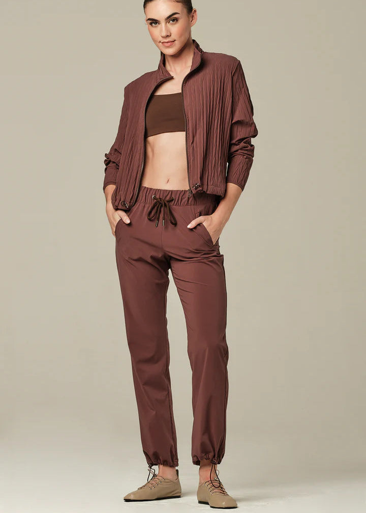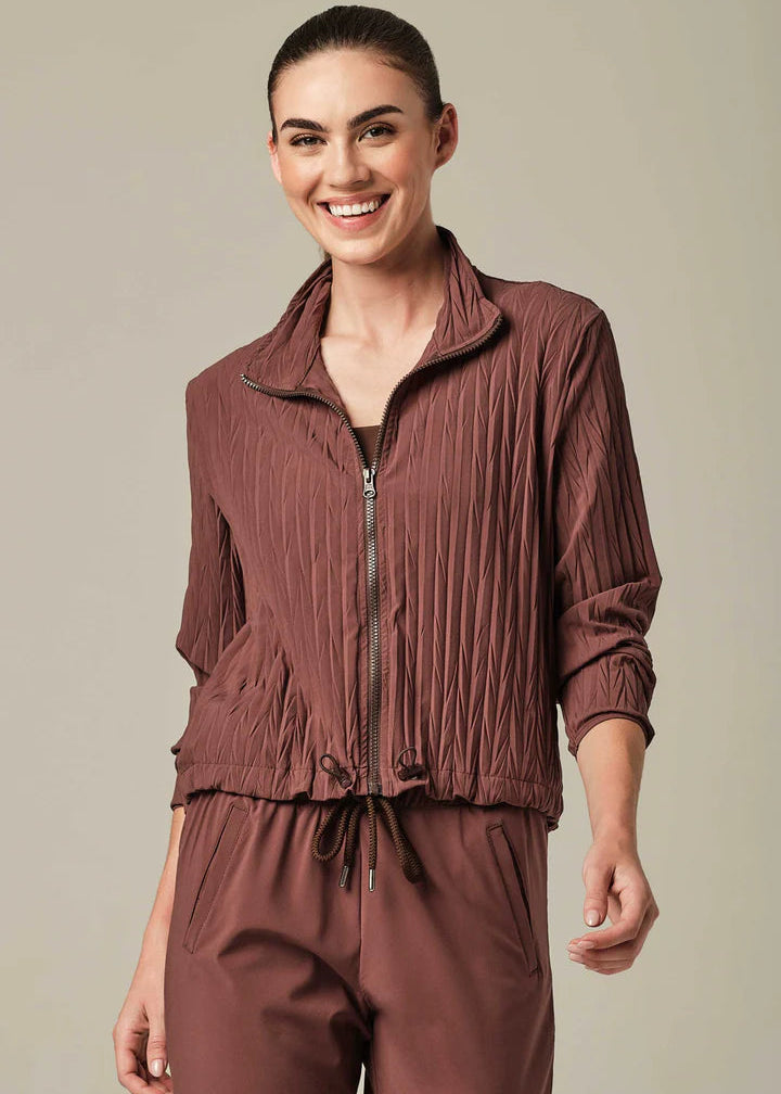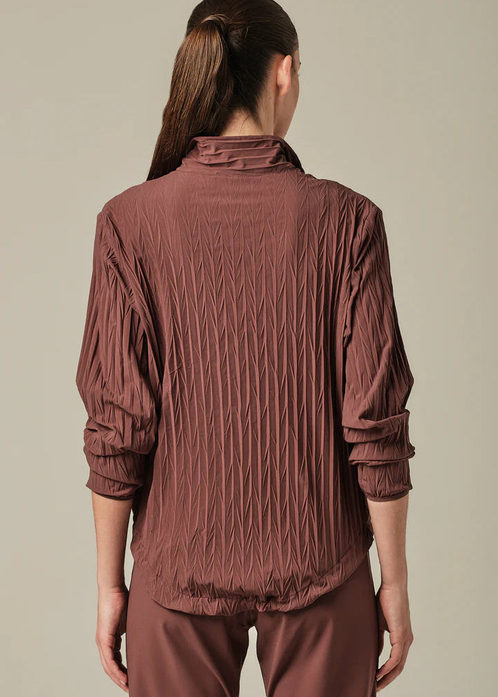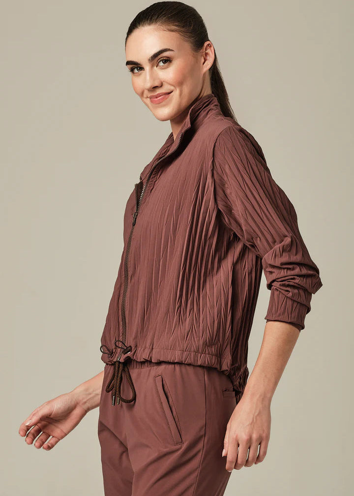 Engineered for dynamic movement, this jacket seamlessly blends athletic functionality with refined design. The textured, lightweight construction features a sophisticated pleated silhouette that adapts to your body's motion. Technical innovations include moisture-wicking Dry-Fit technology, UV protection, and thermal insulation properties. Anti-bacterial treatment keeps the fabric fresh, while fade-resistant materials maintain color integrity through repeated wear. The zip front closure and adjustable drawstring hem provide customizable fit, making it equally suited for high-performance training or elevated casual styling.