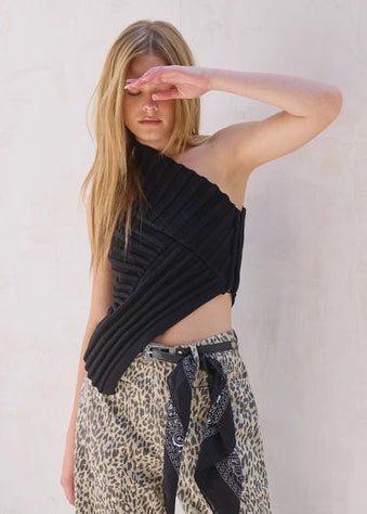 This striking one-shoulder design showcases expertly crafted asymmetrical construction with precision contrast stitching and a strategically angled hem. The substantial textured knit fabric delivers both structure and comfort, while the cropped proportions and concealed side zipper work in concert to define the figure with understated sophistication. Constructed from pure cotton for breathability and durability. Hand wash recommended.