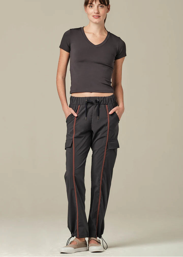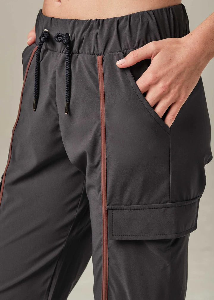 The Sky-Line Jogger seamlessly blends functional design with refined aesthetics. Featuring contrast piping, strategically placed cargo pockets, and an adjustable drawstring hem, this piece delivers practical versatility without compromising on style. Crafted from lightweight, responsive fabric, it adapts effortlessly to your movement whether navigating travel, managing daily errands, or embracing leisure time. The tailored silhouette elevates the jogger beyond casual wear, making it a sophisticated choice for those who demand both performance and polish.