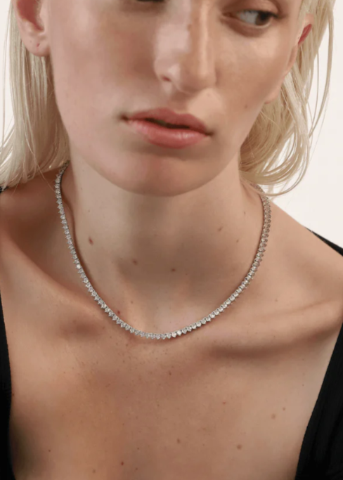 Display enduring elegance with the Artizan Joyeria 3 Prong Tennis Necklace, designed to highlight every dazzling stone with a traditional 3-prong setting. This necklace elevates any outfit with its subtle yet sophisticated charm, making it a lasting addition to your fine jewelry collection.