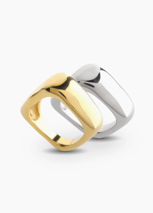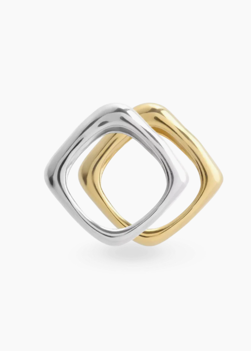 This robust and stylish ring set complements casual chic looks beautifully. Combine the gold and silver rings for a distinctive mixed stack you’ll enjoy wearing daily. Includes two rings per set.