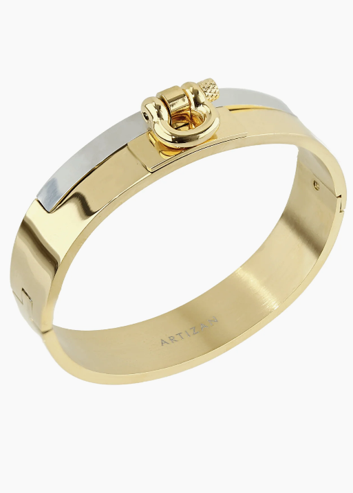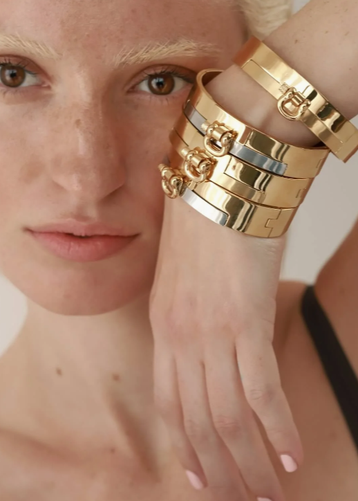 Drawing inspiration from our top-selling necklace, this exquisite bangle is crafted to enhance any outfit. Featuring a horseshoe—an emblem of luck, prosperity, and positive energy—this piece lets you carry those benefits with you. Constructed from 18k gold and rhodium-plated stainless steel, it combines sophistication with resilience.