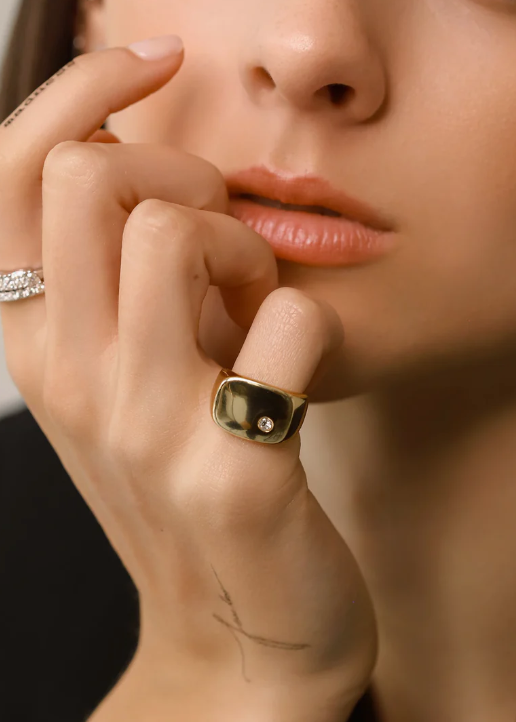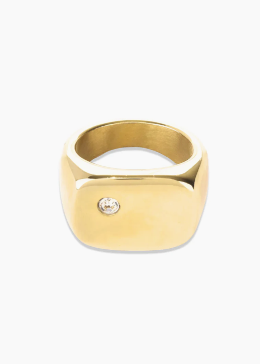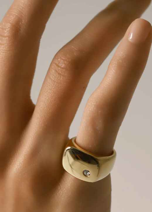 Discover refined luxury with our gold-plated pinky ring, featuring a single zirconia accent. This subtle yet striking accessory effortlessly blends minimalist design with a distinctive personal touch.
