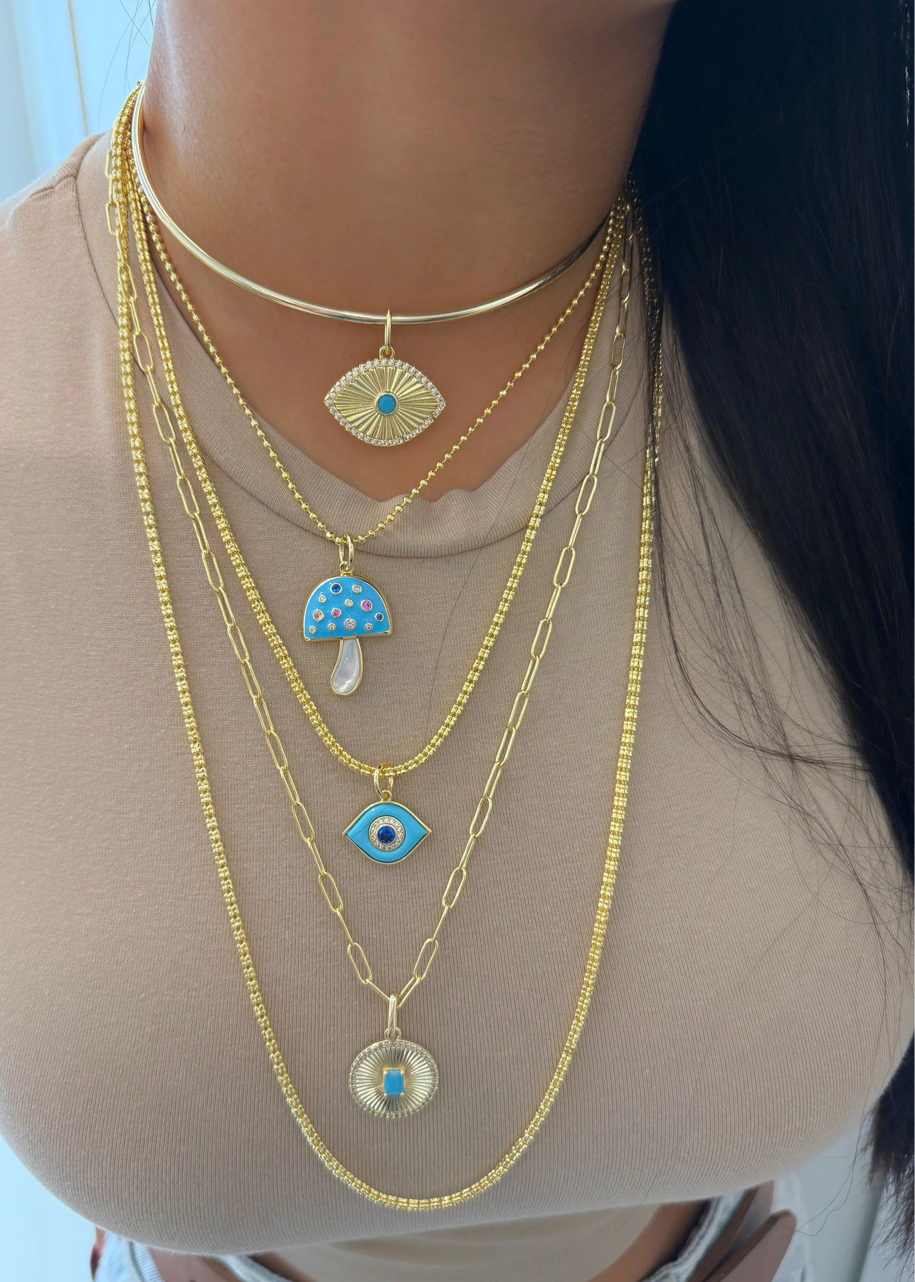 Recognized as a timeless staple in historic jewelry collections, the Hard Choker offers a sleek, understated elegance to any outfit. This minimalist piece enhances your style with a refined touch of luxury. Perfect for wearing solo or customized with your preferred charms. Crafted with 18k gold plating over brass or sterling silver, it measures 2 mm in thickness and has a diameter ranging from 4 to 5 inches.
