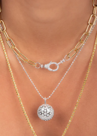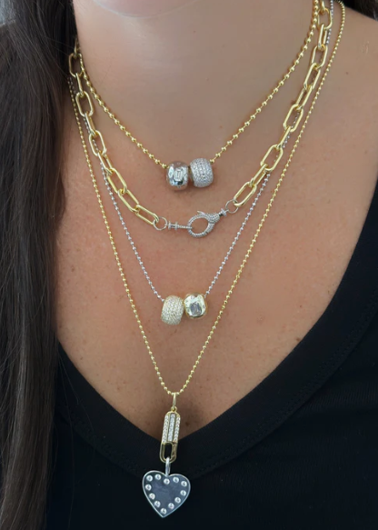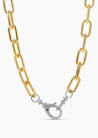 Elevate your ensemble with the Lobster Clasp Paperclip Necklace, featuring a striking oversized lobster clasp adorned with dazzling CZ stones set on a silver base. Expertly crafted with 18k gold plating over brass, this piece also offers a silver-plated option with white CZ accents. Measuring 15.5 inches in length, it includes a 2-inch extension chain for versatile wear.