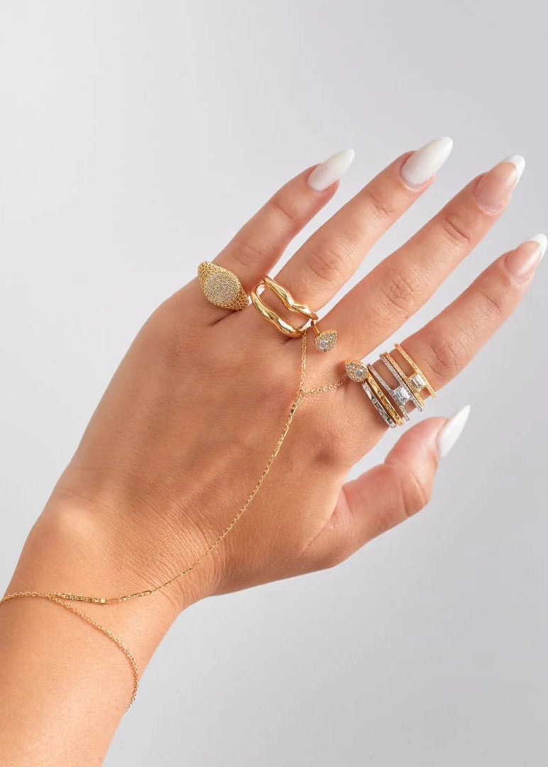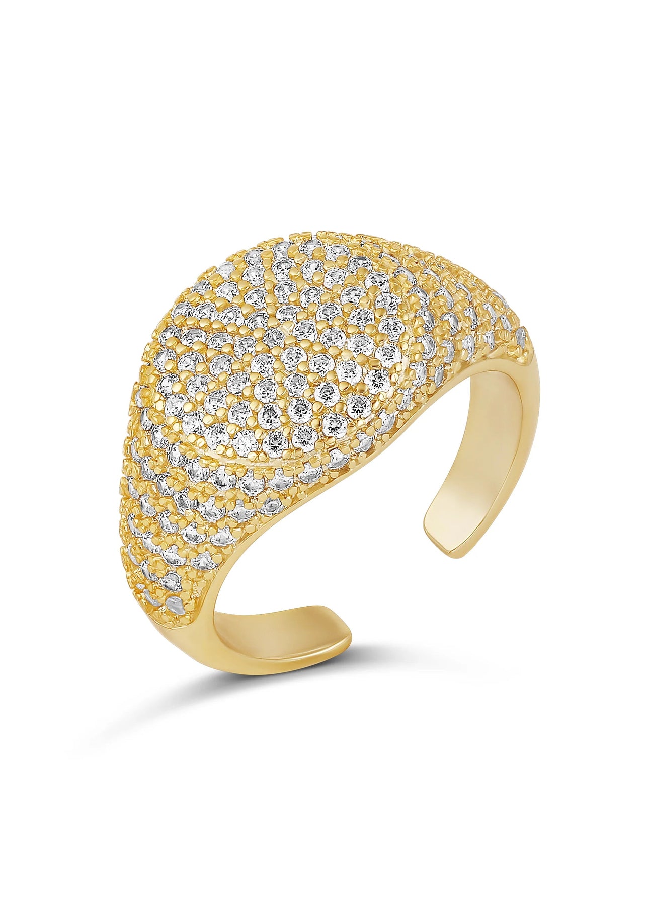 Elevate your style with our latest signet ring, crafted to shine brilliantly. Wear this exquisite piece on your pinky for a touch of elegance, or adjust it to fit any finger comfortably. A versatile and essential addition to your collection, it features 18k gold plating over brass, adorned with white cubic zirconia stones. The ring measures 10 mm in width and offers a customizable fit for effortless wear.