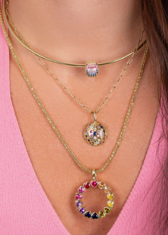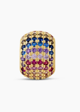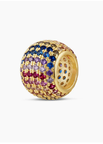 Enhance your charm collection with our Rainbow Pave Spacer Charm. Expertly crafted with 18k gold plating over brass and adorned with vibrant rainbow cubic zirconia stones, this piece brings a refined and playful touch. Sized at 12 x 10 mm, it keeps your charms perfectly aligned while elevating your jewelry’s sophistication.