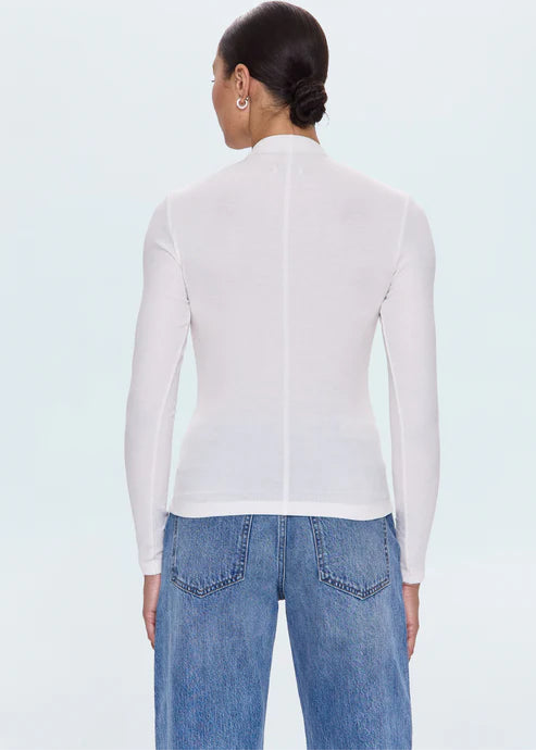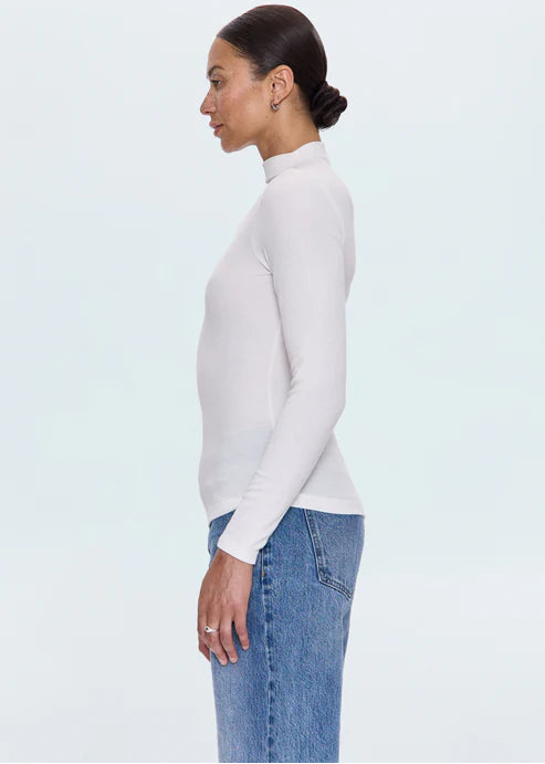 Elevate your everyday rotation with the Pistola Dara Long Sleeve Funnel Neck Top. This refined piece features a distinctive funnel neckline and a fitted silhouette that transitions effortlessly from layering to standalone styling. Constructed from a luxurious modal blend in a versatile ecru tone, the fabric delivers optimal stretch and stability for comfortable, all-day wear. The thoughtful design balances minimalist aesthetics with sophisticated detailโa wardrobe staple that rewards frequent wear.