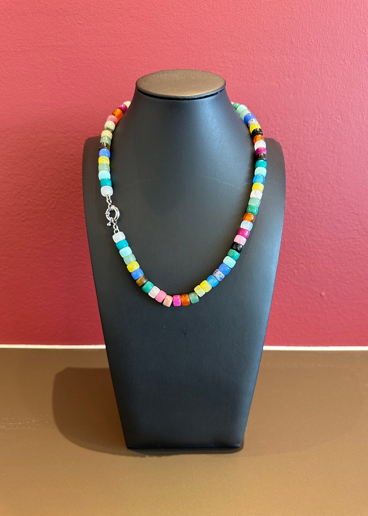 This protection necklace pairs sterling silver chain and hardware with genuine semi-precious gemstone beads (8-9mm) selected for their traditional grounding properties. Designed to foster balance and stabilize your energetic space, each piece is intentionally crafted to amplify healing vibrations. Natural stone variations ensure complete uniqueness across every necklace. A refined accessory worn by style influencers like Justin Bieber, it merges conscious design with purposeful craftsmanship.