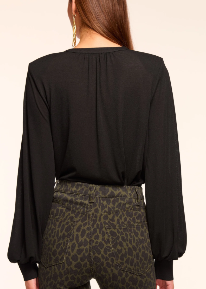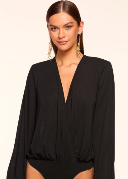 Designed for versatile styling, this knit bodysuit features a flattering crossover bodice and voluminous balloon sleeves that add contemporary flair. The luxuriously soft fabric delivers comfort throughout the day, making it an ideal base layer for pairing with high-waisted silhouettes or building dimensional outfits. A refined essential that transitions seamlessly from casual to polished occasions.