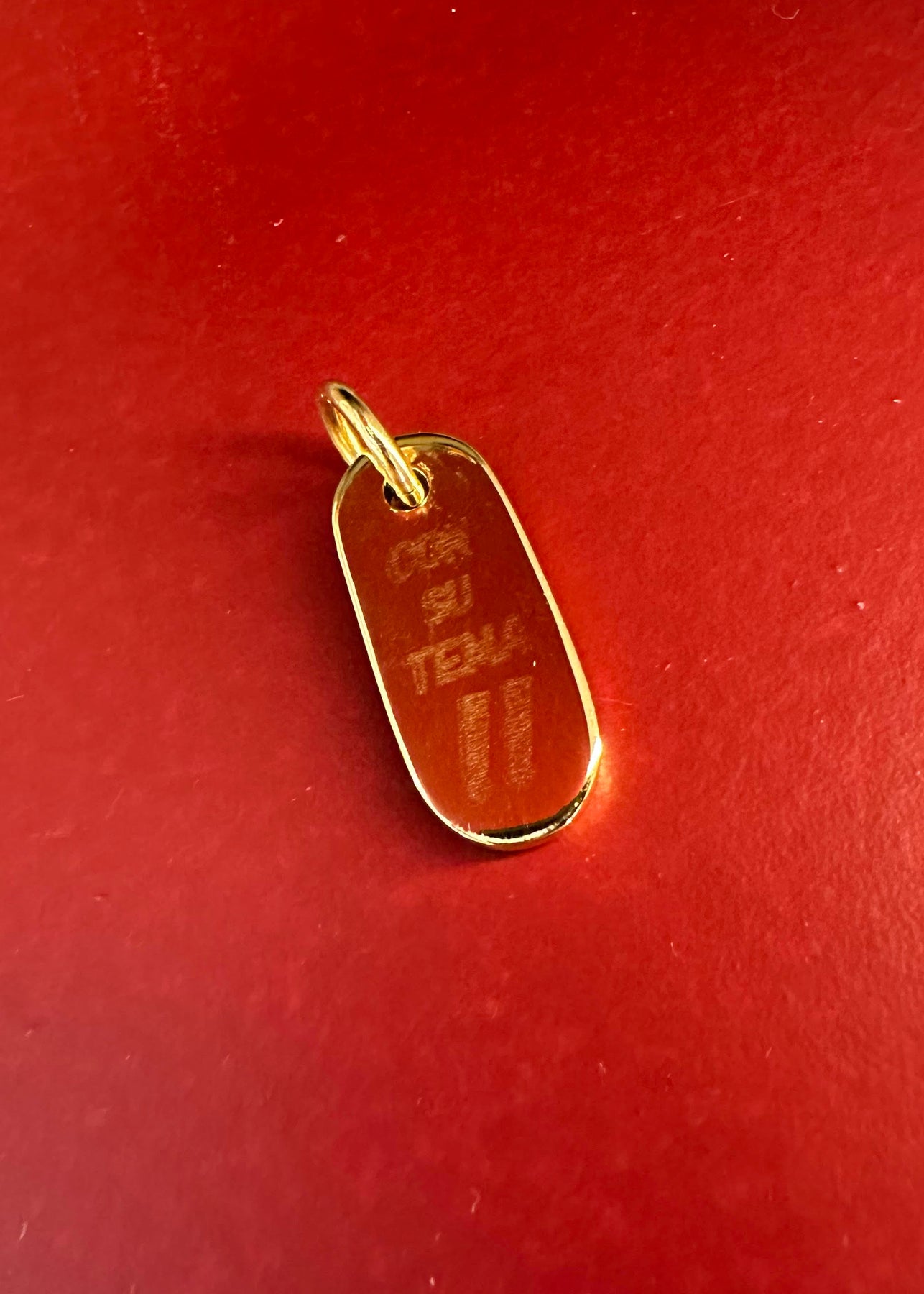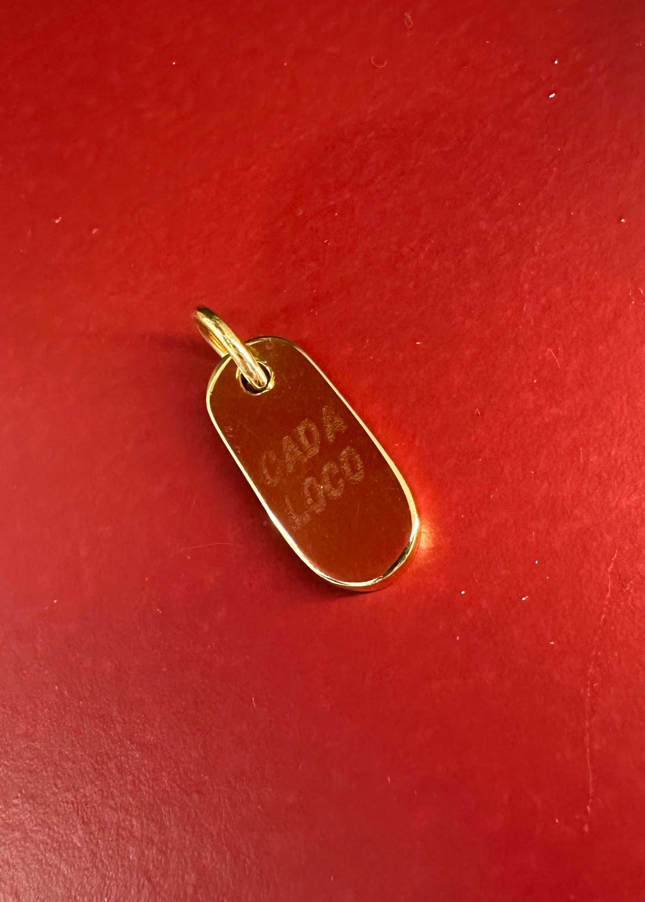 This unisex pendant features a meticulously crafted brass plate with vintage-inspired aesthetics, finished in 24k gold plating for lasting elegance. Measuring 6x1 cm, the polished surface showcases the "Cada loco con su tema" phrase with refined detail. Secured by a reliable lobster clasp, this statement piece combines retro charm with contemporary appeal, making it a versatile addition to any collection.