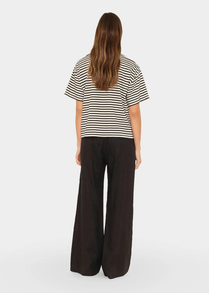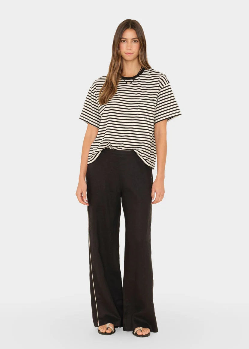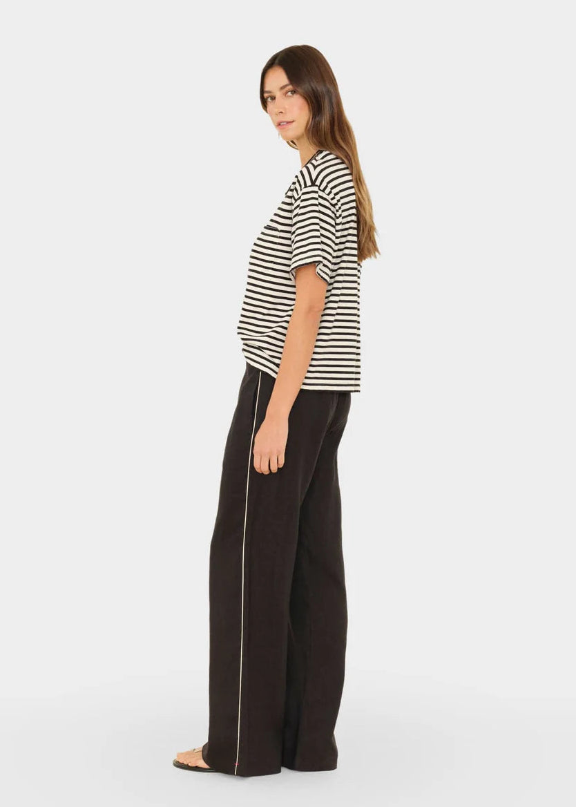Embrace effortless elegance with the Xirena Black Pippen Pant, crafted from breathable lightweight linen for warm-weather versatility. The relaxed wide-leg silhouette pairs with a comfortable elasticized waist and functional side seam pockets, while refined contrast piping adds subtle sophistication. Perfect for transitioning from resort to everyday wear.
